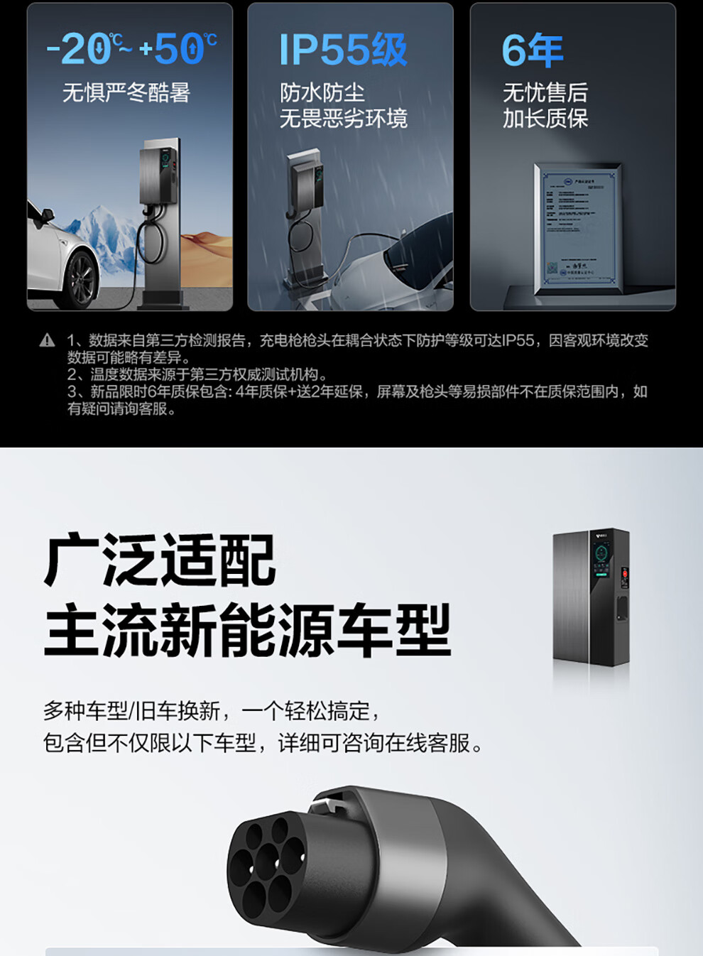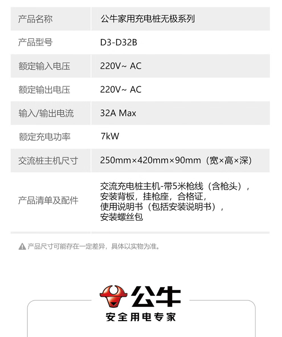 公牛充电桩枪无极旗舰版新能源电动汽车家用适配特斯拉大众华为问界m7/m9智界极氪奔驰宝马小米SU7理想 7kW无极 APP智联版 基础安装包