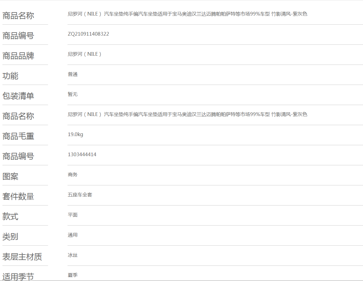 尼罗河(NILE) 汽车坐垫纯手编汽车坐垫适用于宝马奥迪汉兰达迈腾帕帕萨特等市场99%车型 竹影清风-紫灰色