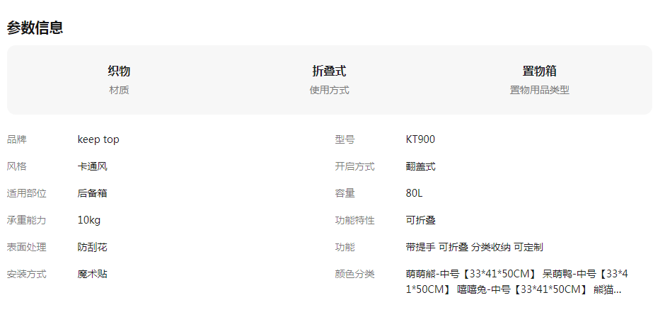 收纳箱车用后备箱可折叠汽车整理箱大容量车载储物盒卡通车内装饰