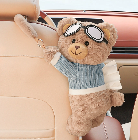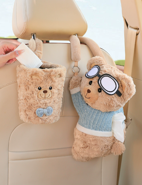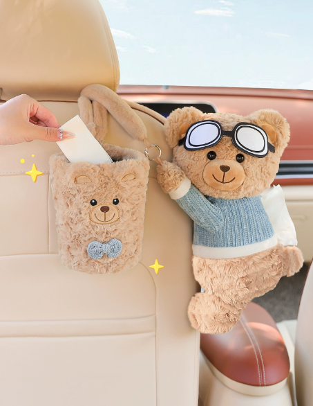 车载摆件汽车纸巾盒2025新款可爱玩偶抽纸盒车上垃圾桶车