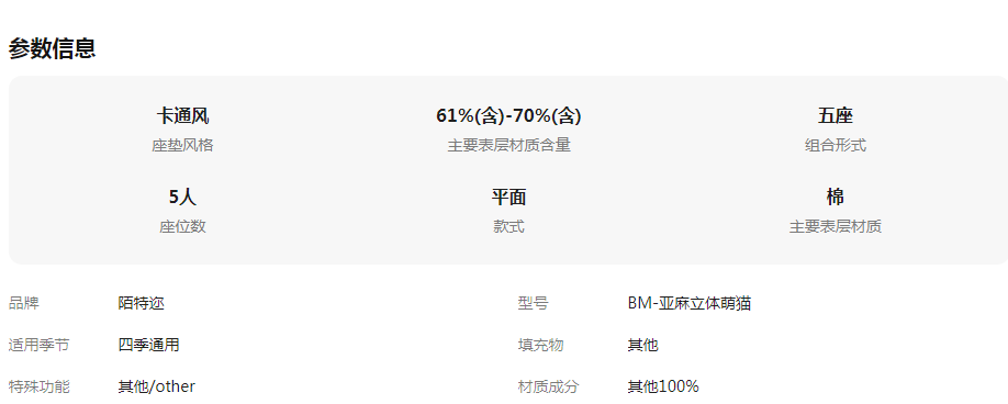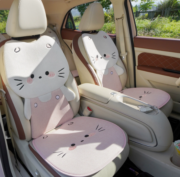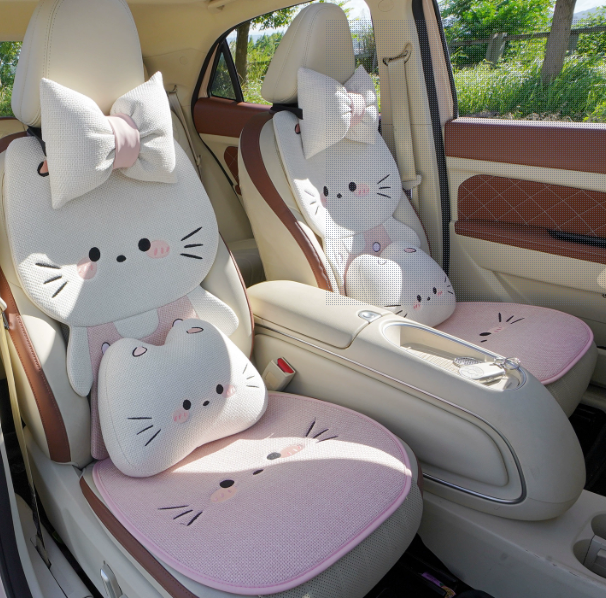 汽车坐垫四季通用亚麻可爱立体萌猫夏座垫秋冬透气后排女神座椅套