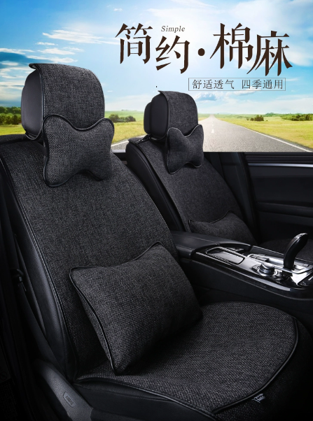 汽车坐垫四季通用棉麻半包围夏季薄款透气免绑布艺亚麻全包座垫套